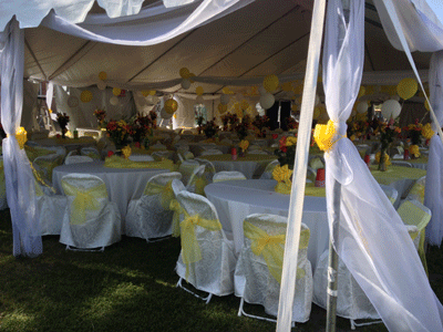 Our trained staff will properly set up and decorate your personal, corporate, wedding or party event, using the colors and rental items of your choice. View our gallery pages to create your own complete theme package that will be setup to use for your special event.