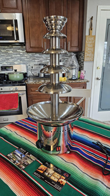 A fountain is guaranteed to make an impression no matter what the occasion. From corporate entertaining and launch events, to parties, celebrations and wedding receptions, this fountain is the ideal focus to make a good event truly memorable and one of the best ways to savor the chocolate experience: an endless fountain of cascading warm chocolate.